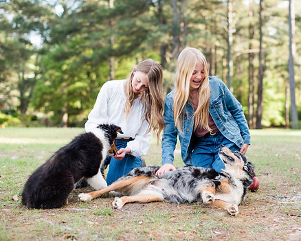 ​Now, as a military family raising six kids, Huckleberry Hill gives us the chance to pass those lessons on. Breeding and raising Australian Shepherds isn’t just a business—it’s a way to instill character, responsibility, and work ethic in our children. Every pup is part of that process, raised in the thick of family life and shaped by the same values that guide our home.​